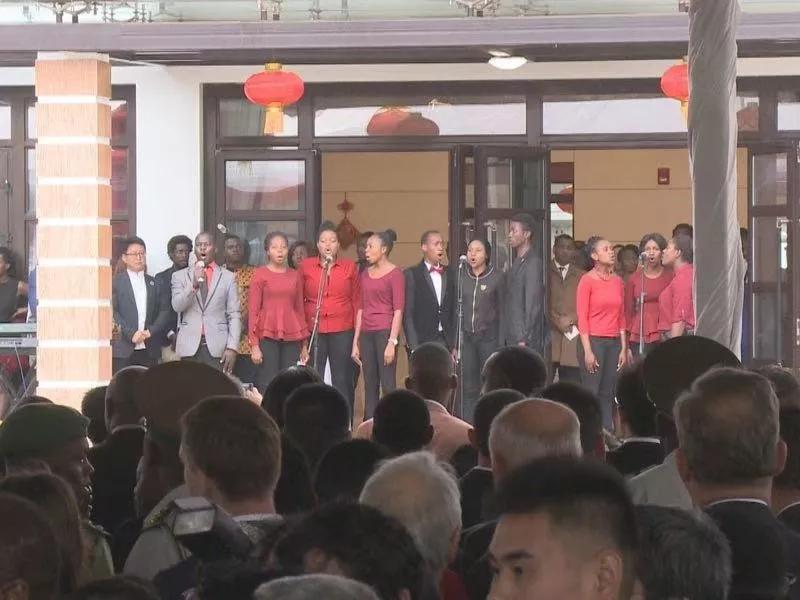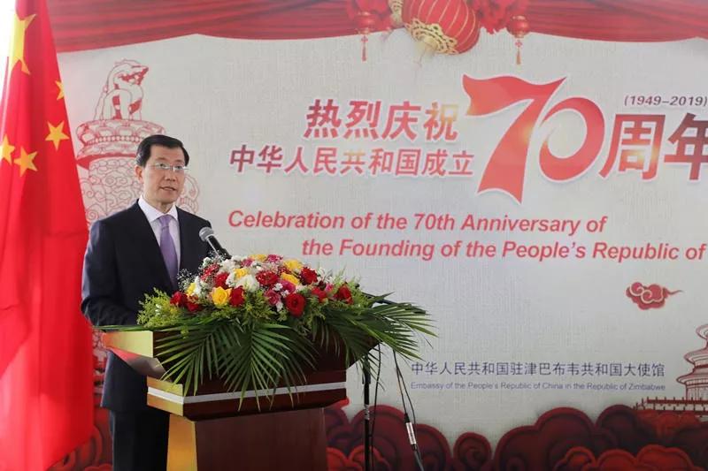 穆欣古里在致辞时表示,谨借此机会,转达姆南加古瓦总统、津政府和人民就新中国成立70周年,向中国国家主席习近平、中国政府和人民表示最诚挚的祝贺,祝愿中国繁荣富强,人民安居乐业,两国友谊地久天长。
