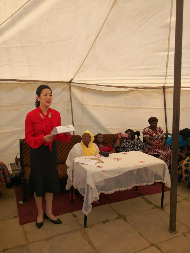 10月8日,中国驻津巴布韦大使郭少春夫人王薇参赞出席向津残疾儿童父母协会捐赠物品仪式。津残疾儿童父母协会负责人特瑞莎女士、赞助人姆坎盖女士、以及残疾儿童父母和残疾儿童代表等200余人参加活动。
