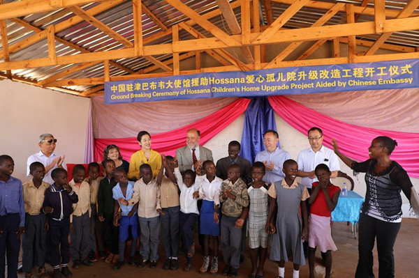 11月5日,中国驻津巴布韦使馆援助Hossana爱心孤儿院升级改造工程举行开工仪式,中国驻津巴布韦大使郭少春夫人王薇参赞出席活动并讲话,孤儿院所在的哈特克里夫区议员马卡姆、使馆经商参赞陈宁、华商会会长李新峰、华商会“爱心妈妈”团体主要负责人、承建单位华陇公司负责人杨凯、“神奇使命慈善基金”负责人以及近百名当地儿童及其父母出席了活动。