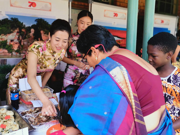2019年11月1日,中国驻津巴布韦大使夫人王薇参赞带领使馆妇女小组成员参加津巴布韦哈拉雷国际学校联合国日活动。
