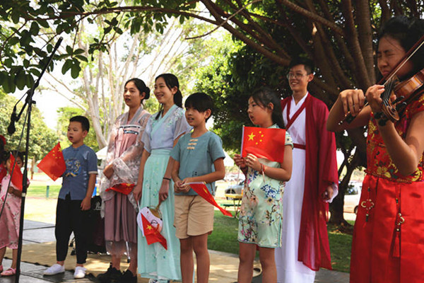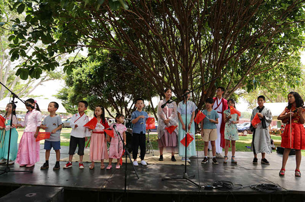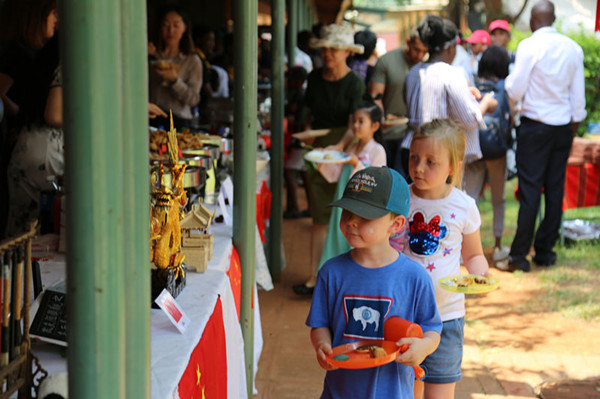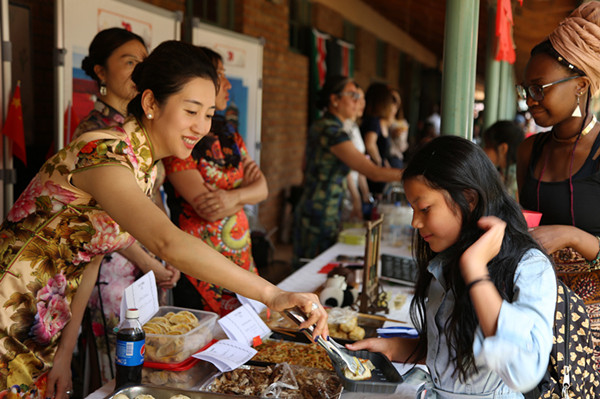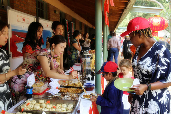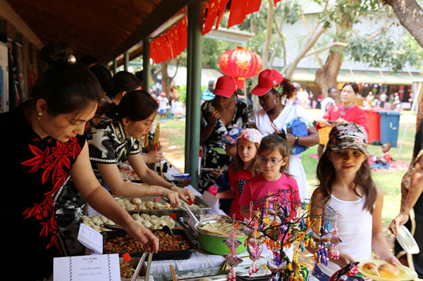 活动期间,中国展台吸引了众多国际友人驻足观看,身着旗袍、举止优雅的妇女小组成员向来宾们展示并介绍中国文化和传统美食。来自哈拉雷国际学校的中国小朋友演唱了《茉莉花》、《我和我的祖国》等歌曲,赢得现场来宾的阵阵掌声。