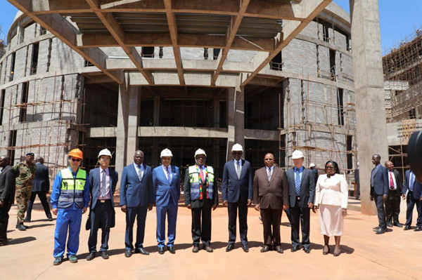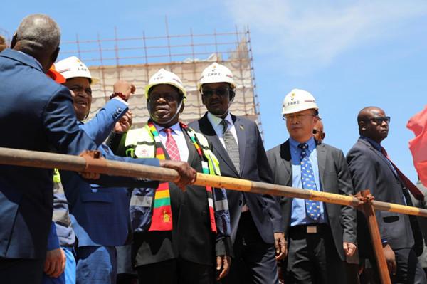 2019年11月27日,津巴布韦总统姆南加古瓦视察中国援建津议会大厦工地,津副总统奇温加、莫哈迪,地方政府和公共工程部长莫约,中国驻津使馆临时代办赵宝钢等陪同。姆南加古瓦首先听取承建单位上海建工集团有关工程进展情况的汇报,随后赴工地现场视察并致辞。