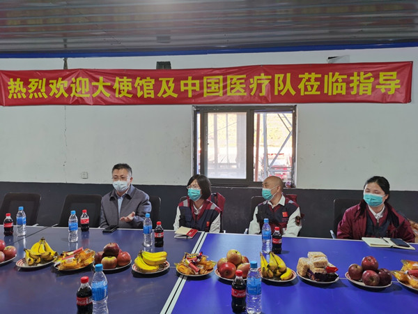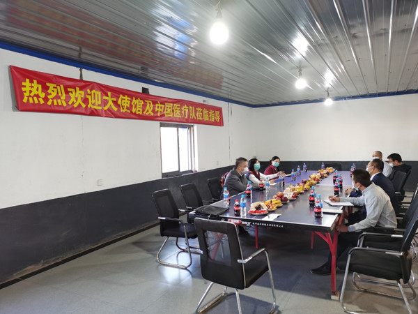 5月21日下午,中国抗疫医疗专家组走访在津中国企业阳光易丰公司,就内部疫情防控、有序复工复产等内容与公司负责人进行交流。驻津使馆赵宝钢公参出席活动。