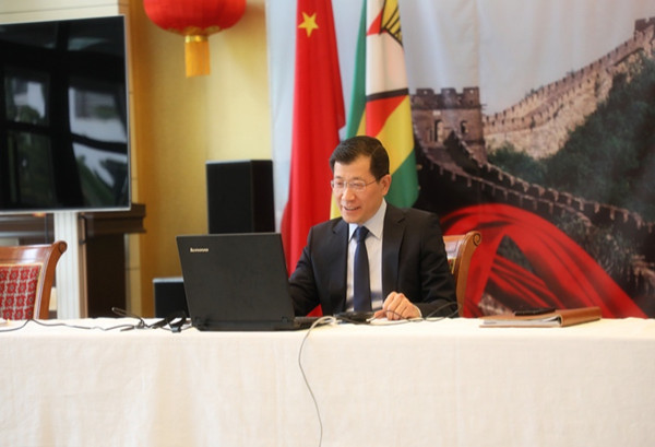 9月14日,驻津巴布韦大使郭少春同津巴布韦副总统奇温加视频连线,就中津抗疫合作及双方共同关心的问题交换意见,我馆赵宝钢公参等出席会议。