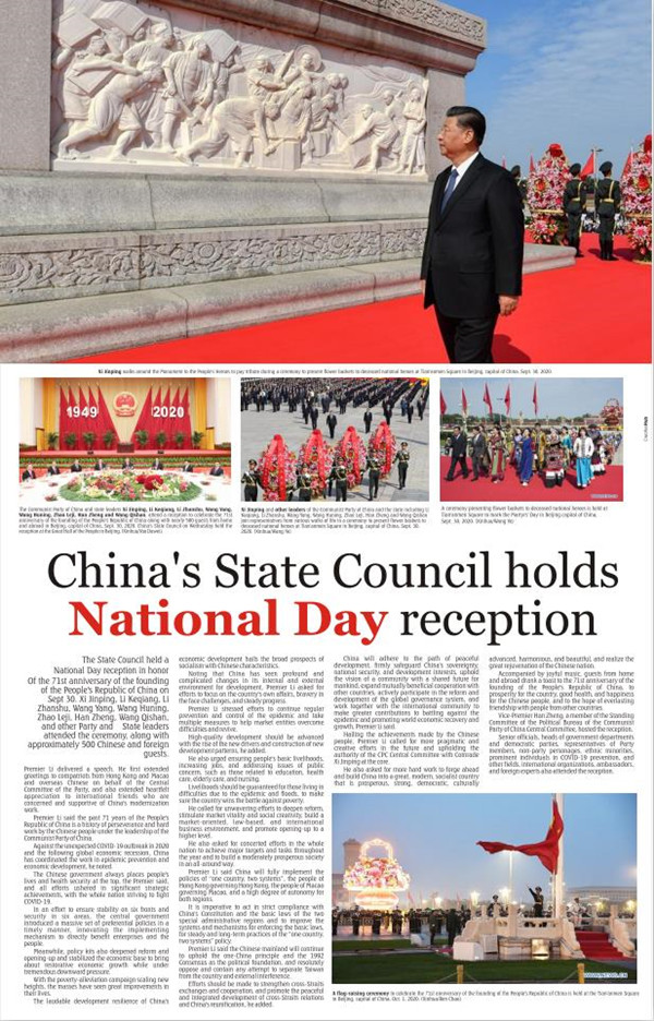 2020年10月3日,津巴布韦发行量最大报纸《先驱报》发行系列增刊第三期,配发了习近平主席等党和国家领导人和各界代表出席烈士纪念日向人民英雄敬献花篮仪式、瞻仰人民英雄纪念碑及10月1日天安门广场举行升国旗仪式等活动照片,刊登了我国务院在人民大会堂举行国庆招待会的报道及李克强总理致辞要点,热烈庆祝中华人民共和国成立71周年。