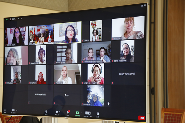 2020年10月14日,中国驻津巴布韦大使夫人王薇参赞主办津外交官配偶协会月度线上文化交流活动,印度尼西亚、欧盟、阿尔及利亚、赞比亚、美国、联合国教科文组织等二十个国家和国际组织驻津外交官夫人和女外交官参加。
