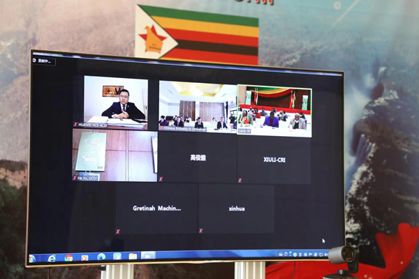 为庆祝中国共产党成立100周年,2021年6月8日,驻津巴布韦使馆与津执政党津民盟联合举办“中国共产党百年奋斗历程与中津两党传统友好关系”线上研讨会。郭少春大使、赵宝钢公参、程岩参赞及使馆相关馆员参加,津民盟政治局委员、外事书记蒙本盖圭,新闻宣传书记莫约,本土化和经济赋权书记毕马,契特波党校校长马查查等五十名党内中高级干部与会。会议由赵宝钢公参和蒙本盖圭书记共同主持,双方代表围绕会议主题,就“继续伟大斗争,赢得民族复兴”、“中国对非对津民族解放事业的支持与帮助”、“两党友好历史与合作前景”、“加强治国理政与减贫经验交流”四个专题深入研讨,取得丰硕成果。