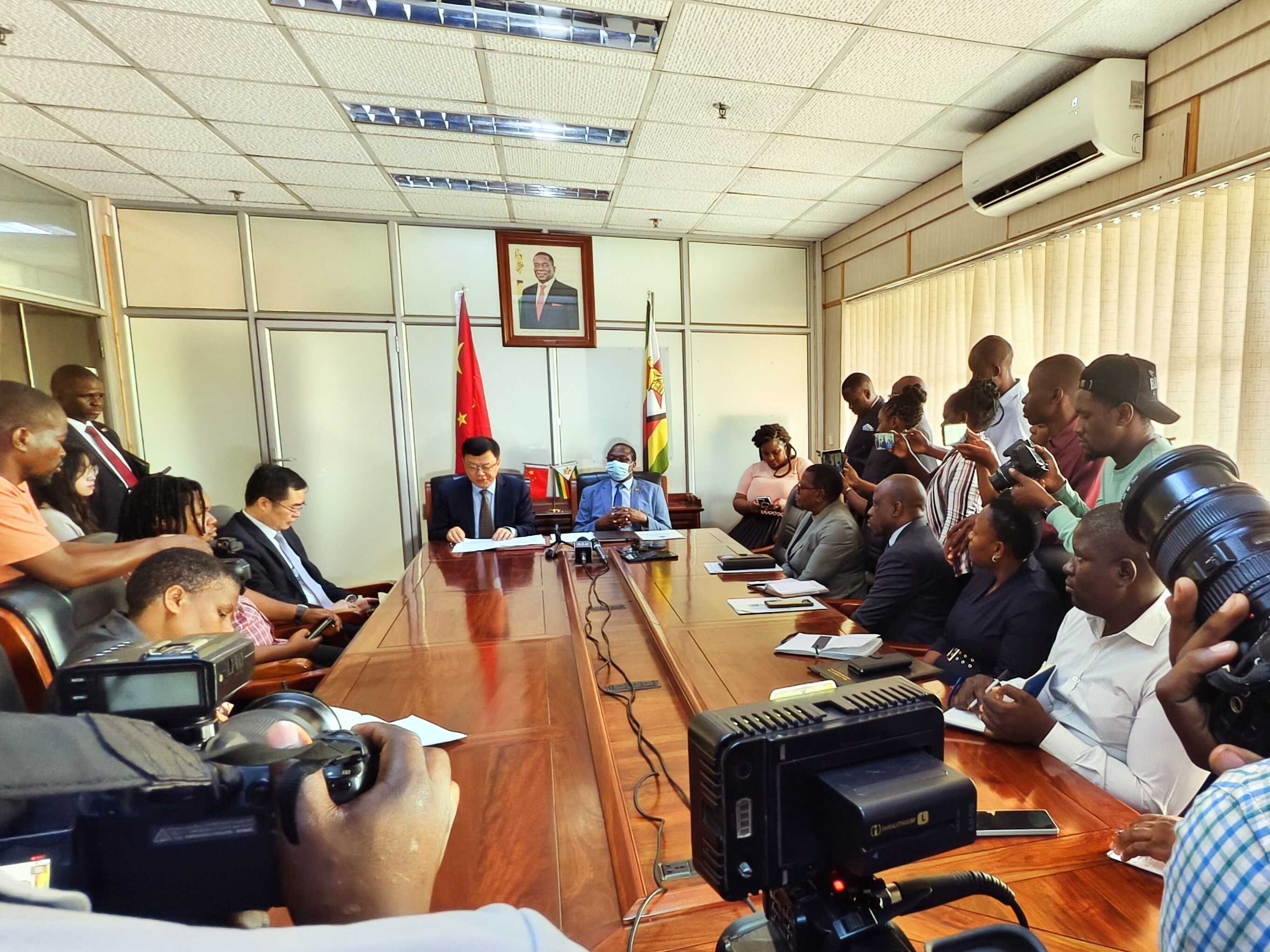 12月18日,驻津巴布韦大使周鼎会见津财政、经济发展和投资促进部长恩库贝,双方就进一步深化中津务实合作交换意见,并共同签署援津灌溉设施升级项目立项换文。
