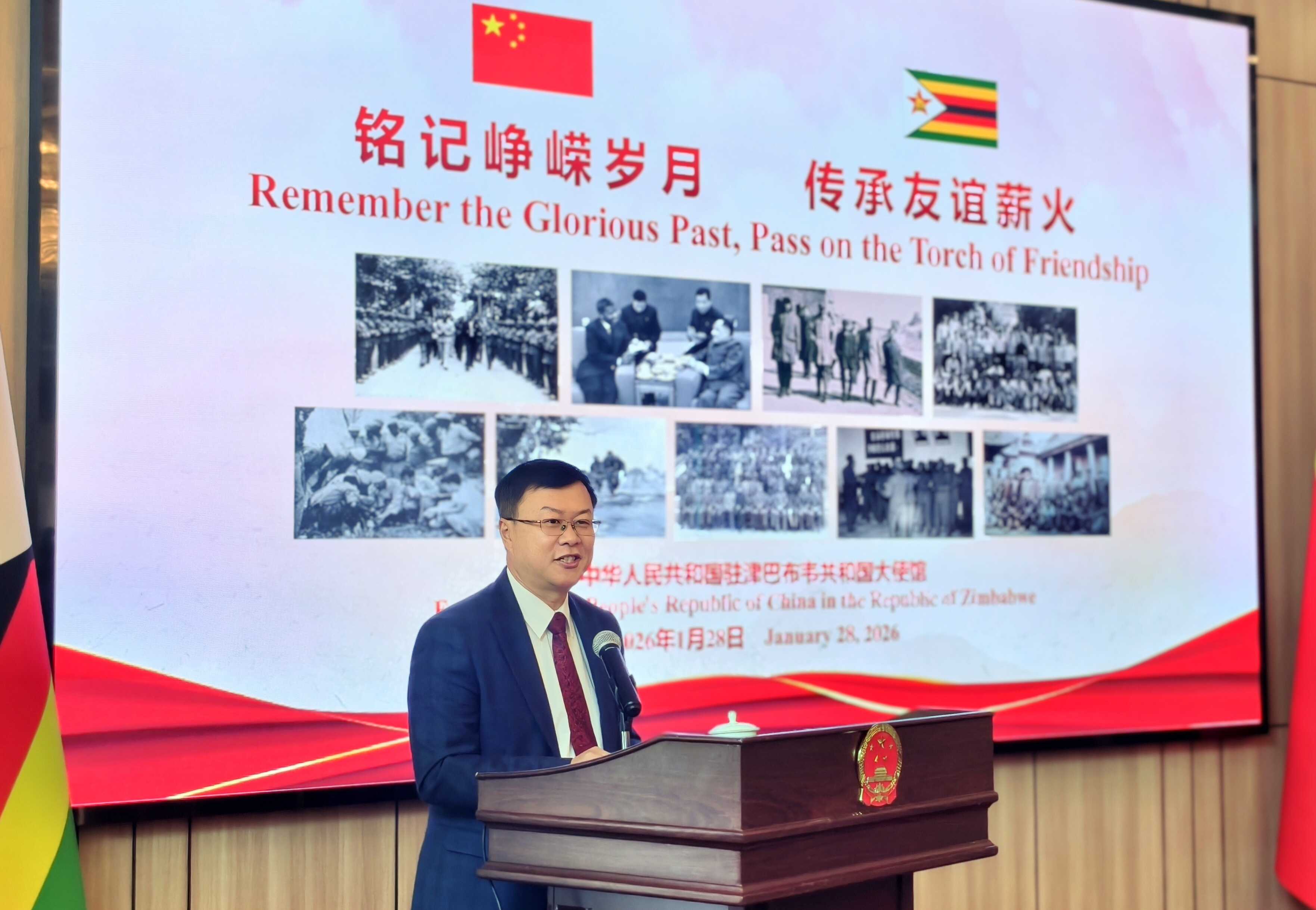 1月28日,驻津巴布韦大使周鼎向津解放斗争老战士代表转交习近平主席复信。津退役军人部副部长莫约,民盟总政委马查查、退役军人事务书记马海亚,议会外委会主席沙穆及多名国会议员,革命元勋后代、青年与媒体代表等百余人出席。