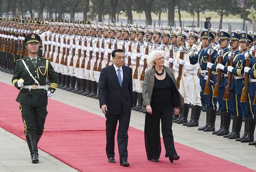 会谈前,李克强在人民大会堂东门外广场为西于尔扎多蒂举行欢迎仪式。