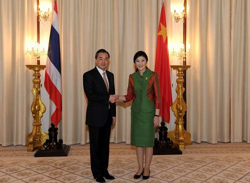 2013年5月1日,泰国总理英拉在曼谷总理府会见外交部长王毅。