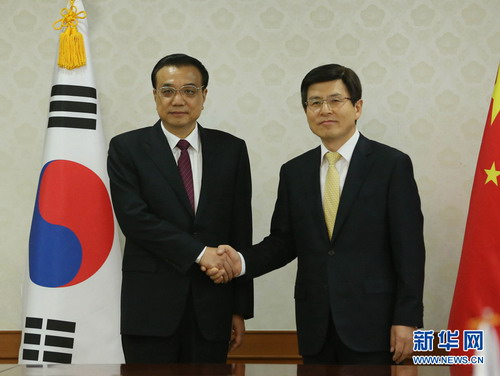 黄教安首先祝贺李克强总理正式访韩并出席韩中日领导人会议取得圆满成功,并表示,韩中各领域合作取得了长足进展,韩方愿以李总理此访为契机,加紧落实此访达成的共识,着眼长远,加强战略对话,拓展创新合作,积极探索共同开拓第三方市场,密切青少年交流,丰富两国关系内涵,推动韩中战略合作伙伴关系向前发展。