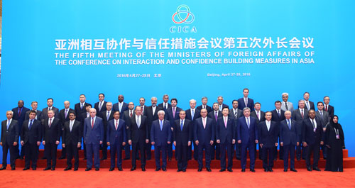 2016年4月28日,亚洲相互协作与信任措施会议第五次外长会议在北京举行。亚信成员国、观察员国外长以及有关国际地区组织负责人在内的40余位代表出席会议。外交部长王毅主持会议并发表主旨讲话。