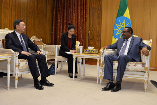 当地时间2017年3月20日,埃塞俄比亚总理海尔马里亚姆在亚的斯亚贝巴会见国务委员杨洁篪。
