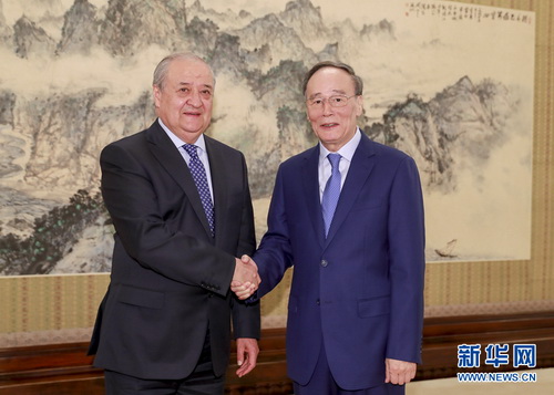 王岐山表示,乌兹别克斯坦是“丝绸之路”古国。建交27年来,两国关系始终保持高水平运行。在两国元首战略引领下,各领域合作不断深化。中乌两国都致力于通过改革开放实现国家富强、民族振兴和人民幸福,目标越高,越要把握好时间尺度,保持定力和耐心,一步步实现战略目标。中乌应继续相互坚定支持,加强治国理政经验交流,深化全方位合作,密切在上合组织等多边平台的沟通协调。