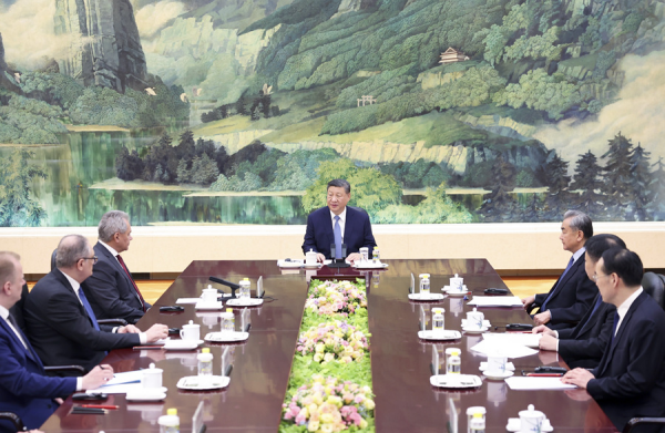 2025年2月28日下午,国家主席习近平在北京人民大会堂会见俄罗斯联邦安全会议秘书绍伊古。