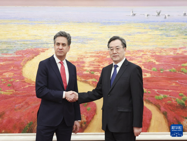 2025年3月17日,中共中央政治局常委、国务院副总理丁薛祥在北京会见英国能源安全和净零排放大臣米利班德。