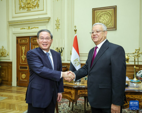 李强表示,中埃虽然相距遥远,但两国的友好交往源远流长。建交以来,无论国际风云如何变幻,中埃传统友谊的底色不改,两国关系与合作发展的势头不减,并且还在持续焕发蓬勃生机,展现出强大内生动力。中方愿同埃方进一步弘扬传统友谊,增进政治互信,坚定支持彼此核心利益与重大关切,推动两国关系不断迈上新台阶、两国合作取得更多新成果,更好惠及两国人民。希望双方保持立法机构友好往来,加强政策沟通和治国理政经验交流,不断增进相互理解。