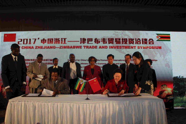 5月5日,应津巴布韦宏观经济计划和投资促进部以及哈拉雷省邀请,浙江省人大常委会副主任王辉忠率浙江经贸代表团访津,并在哈拉雷成功举办“2017中国(浙江)—津巴布韦贸易投资洽谈会”,哈拉雷省省长奇库夸、津经济计划部常秘西班达,浙江省人大常委会秘书长厉月姿、省贸促会会长吴桂英,中国驻津巴布韦大使黄屏、经商参赞李耀辉,华联会会长丛玉玲等侨团组织代表,中津企业家代表等200余人出席活动。