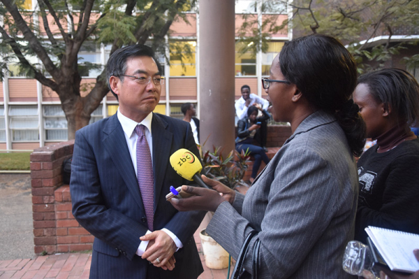 5月10日,中国驻津巴布韦大使黄屏应邀在津巴布韦大学发表题为“中国发展形势与中非和中津关系”的演讲,介绍中国当前发展形势以及中非、中津友好合作的成果与前景。津大副校长兼孔子学院津方院长马希礼、津大商学院院长龚备、津大师生及中津记者等200余人出席活动。