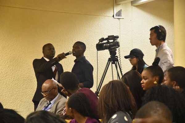黄大使结合今年李克强总理《政府工作报告》的主要内容,回顾了一年来中国在政治、经济、文化、对外投资等各方面发展情况,重点介绍了中国去年举办G20杭州峰会、今年即将举行“一带一路”高峰论坛和金砖峰会等重大主场外交活动。黄大使全面阐述了中国对非和对津政策,包括中非合作论坛成果落实情况和中津两国在高层互访、地方交流、国际问题上相互支持、发展援助、务实合作和人文交往方面取得的丰硕成果。黄大使寄语在场学生,希望他们常怀远大理想,珍惜本国优良传统,积极拓展国际视野,努力学习汉语,为津经济社会建设和中津关系发展贡献自己的力量。200座的会场座无虚席,黄大使精彩的演讲博得在场听众阵阵欢呼和掌声。