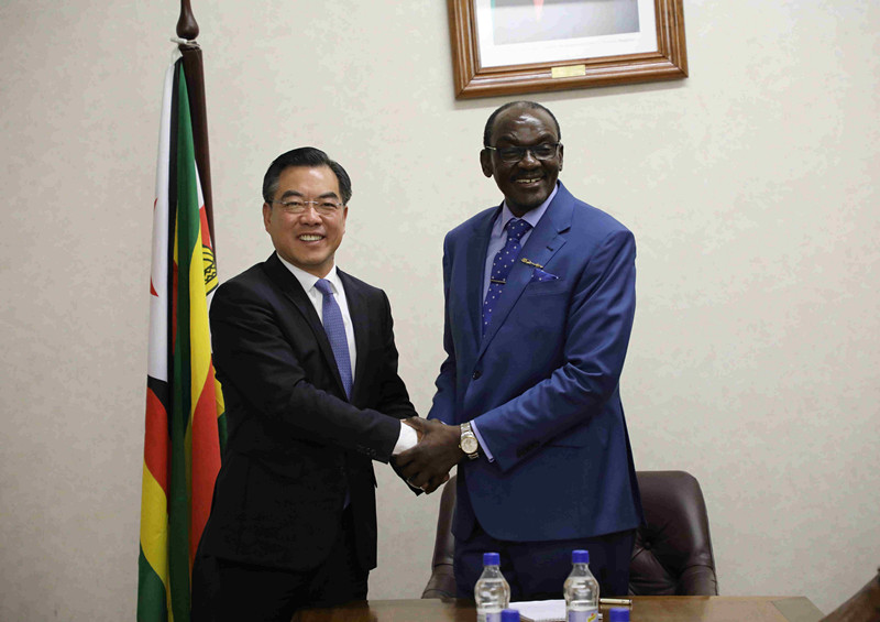 9月19日,中国驻津巴布韦大使黄屏离任拜会津巴布韦副总统莫哈迪。我馆赵宝钢政务参赞,津外交与国际贸易部亚太司副司长克钦会见时在座。黄大使向莫哈迪转交了中国国家副主席王岐山祝贺其就任副总统的贺电。莫哈迪对中方第一时间祝贺其履新表示感谢。