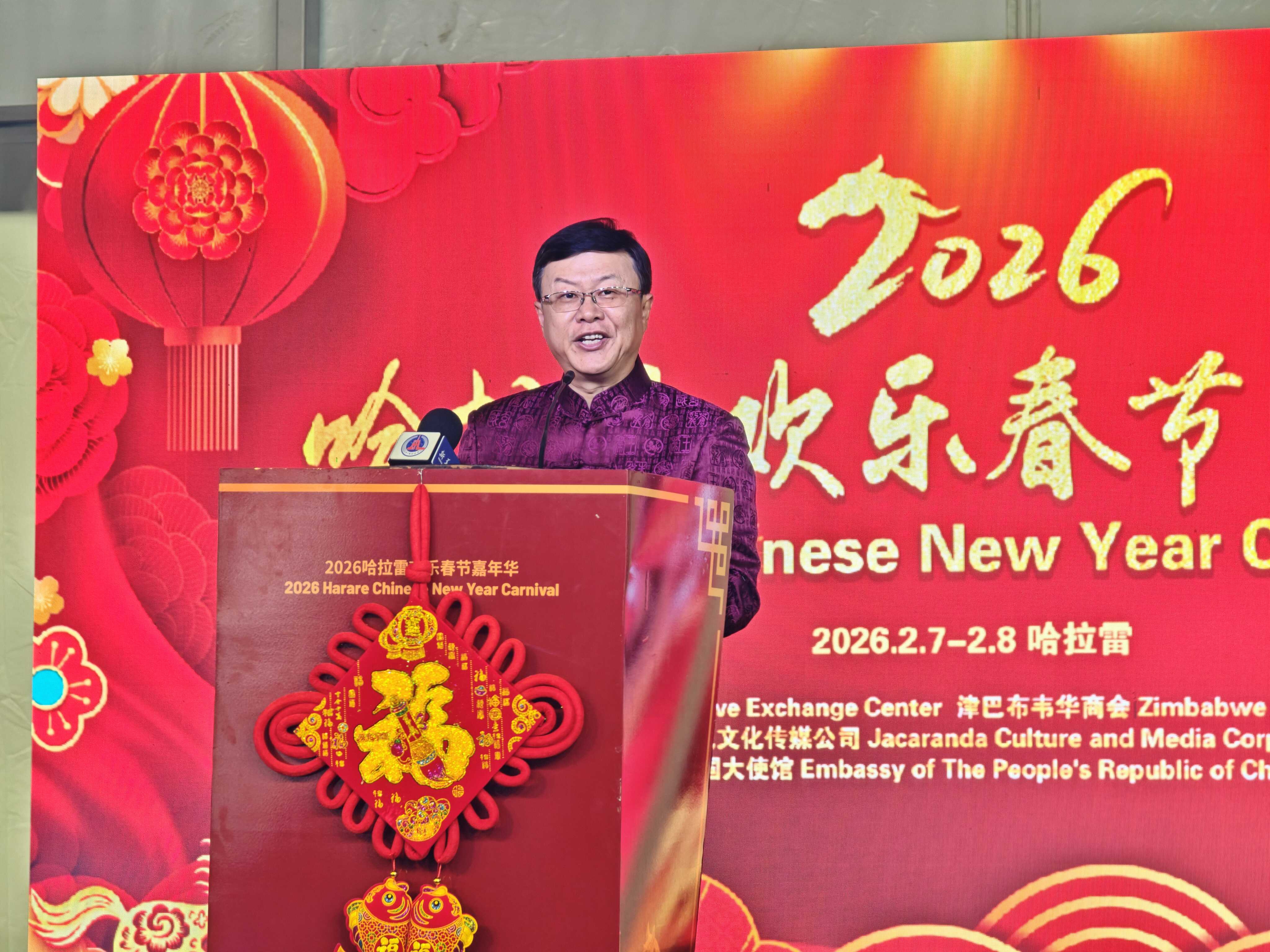 2月7日,驻津巴布韦大使周鼎出席2026哈拉雷欢乐春节嘉年华开幕式,与津政要、各界友人和在津华侨华人、中资企业机构代表千余人共迎马年新春。