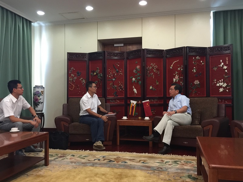 2016 年1 月8 日,驻津巴布韦大使黄屏应约会见中国水电国际工程有限公司代表吴一冯及中国水利水电第十六工程局有限公司市场负责人谢登。听取了卡里巴南岸扩机工程、旺吉火电站等项目进展及公司在津业务拓展情况。