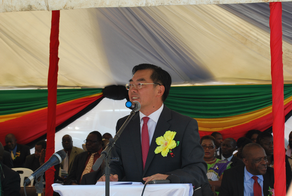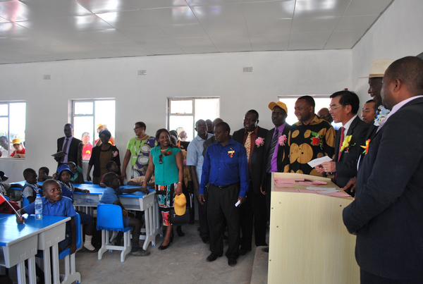 黄大使发表了热情洋溢的致辞,祝贺铭畅小学建成移交。黄大使说,“十年树木、百年树人”,教育对个人成长、社会发展和民族振兴都至关重要,津政府十分重视教育发展,津成人识字率常年位于非洲前列,中方对此表示赞赏。黄大使介绍了我援津教育领域有关情况,表示广大在津中资企业在自身发展同时,也高度重视回馈当地社会,洺畅小学就是一个很好的例子,它开创了中国民营企业在津全资援建小学的先例,相信这仅是一个开始,将来会有更多的中国企业加入到支持津教育事业中来。黄大使最后祝小学办学顺利,培养出更多人才,并代表使馆向学校捐赠了电脑等物资。现场群众多次对黄大使的讲话报以热烈的掌声。