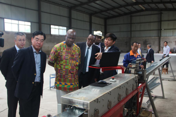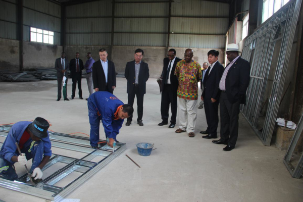 奇纳马萨一行听取了项目投资方中国工业集团(津巴布韦)有限公司负责人聂海洋对轻钢结构住房项目和农业合作项目的介绍,并参观了房屋样板间、加工车间和农产品试验田。