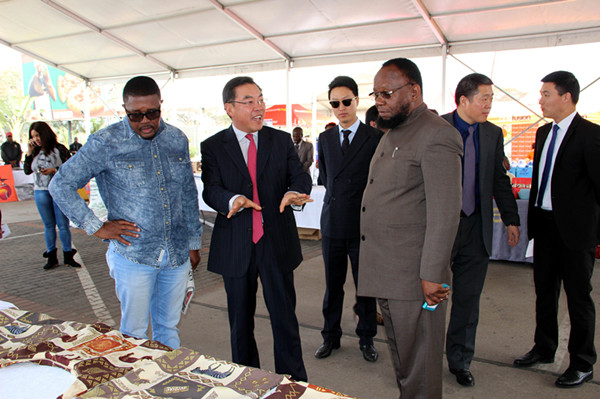 2017年8月5日,龙城国际商贸公司和津巴布韦妇女农业联合会在哈拉雷龙城广场共同举行中小企业商品展示会启动仪式。黄屏大使、津中小企业部技术服务司司长巩多(代表恩尤尼部长)、旅游部长穆赞比、基础教育部长道考拉、宏观经济规划和投资促进部常秘卡特拉、马拉维驻津大使库穆温达、津妇女农业联合会负责人玛春格塔、龙城国际商贸公司总经理张士斌、中资企业代表、中津媒体记者等出席。来自津各地的数十家展商展示了手工艺品、绘画音乐艺术品、服装、农产品、食品、日用品、儿童读物等商品和旅游、教育等服务,现场气氛热烈,吸引数百人驻足参观、购买和咨询。今后,展会将于每周六在龙城广场举行。