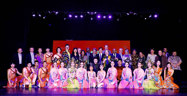 演出结束后,黄屏大使邀请津官员和各国使节登台,与演职人员一一握手并合影留念,感谢他们的辛勤付出,祝贺首场演出取得圆满成功。