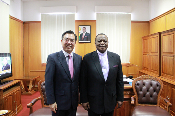 1月11日,中国驻津巴布韦大使黄屏会见津副总统奇温加,与其就双边关系等问题深入交换意见。使馆政务参赞赵宝钢、经商参赞李耀辉和津外交部亚太司司长乌塔乌纳舍等陪同。