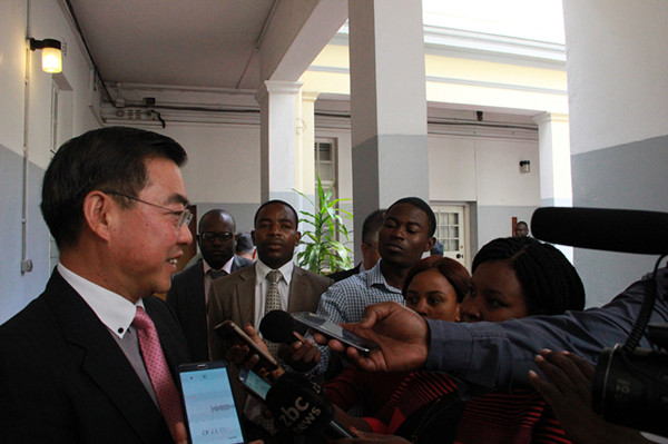 会见结束后,黄大使接受了津巴布韦国家电视台、《先驱报》等主流媒体采访。