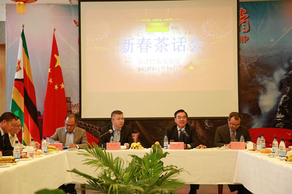 1月19日,中国驻津巴布韦使馆举办新春茶话会,黄屏大使出席并发表新春致词,使馆政务参赞赵宝钢主持茶话会。李军武官、李耀辉经商参赞等使馆领导和工作人员,津中资企业商会及华商会、华联会等机构和侨团代表,援津医疗队和孔子学院代表,中央媒体驻津记者共60多人与会,畅叙友谊,共迎新春。