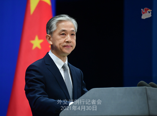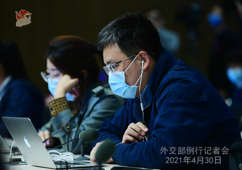 Wang Wenbin: China closely follows the evolving epidemic situation in India. Chinese State Councilor and Foreign Minister Wang Yi sent a message of sympathy to Indian External Affairs Minister Subrahmanyam Jaishankar over the worsening situation of COVID-19 in India. He said that China would maximize its efforts to provide support to India.