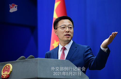 Zhao Lijian: China welcomes a ceasefire between parties of the Palestine-Israel conflict and hopes relevant parties can effectively cease fire and stop violence. We appreciate the mediation efforts made by Egypt, the UN and others. China has also done a lot to promote peace talks and is ready to continue to work with the international community to further ease the tensions.