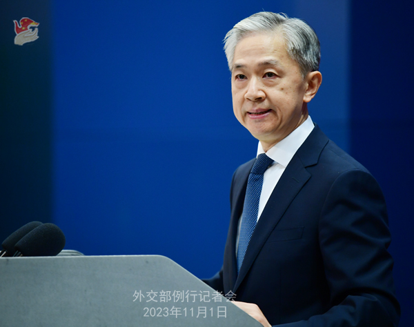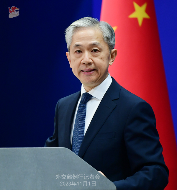 Wang Wenbin: On October 31, the First Committee of the 78th session of the UN General Assembly approved with strong support the resolutions titled “No first placement of weapons in outer space” and “Further practical measures for the prevention of an arms race in outer space” co-sponsored by countries including China and Russia. Both stress the importance of preventing an arms race in outer space and joint efforts to build a community of shared future for humankind.