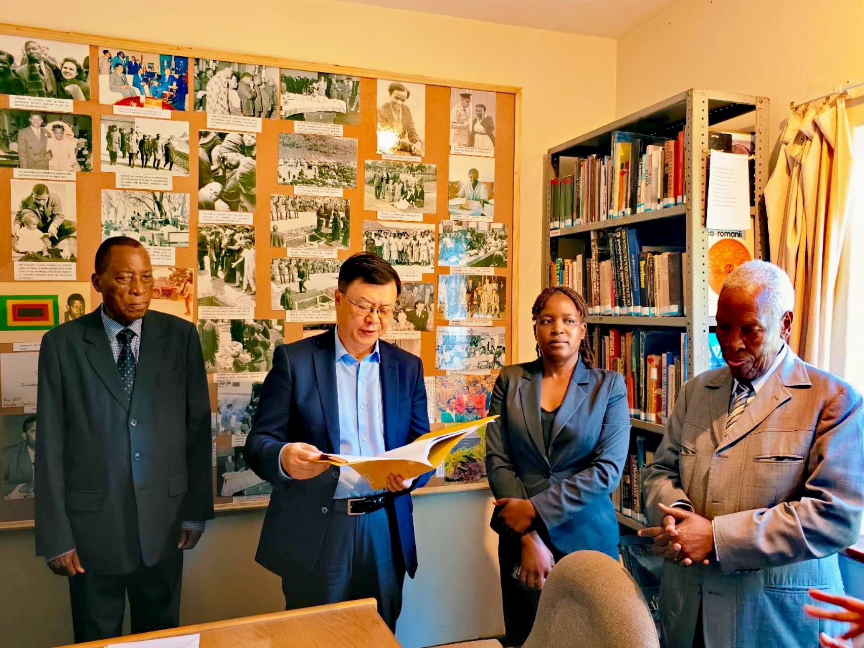 Ambassador Zhou viewed a collection of precious items related to Herbert Chitepo, including photographs, publications, books, and his graduation gown. He also received a detailed briefing on the preservation and archival work concerning these materials. Ambassador Zhou remarked that Herbert Chitepo was an important leader and revolutionary theorist in Zimbabwe’s national liberation struggle, who made indelible historical contributions to Zimbabwe’s sovereign independence, national freedom and the fostering of China-Zimbabwe friendship. China is ready to support the Trust in preserving and promoting Chitepo’s revolutionary legacy, expand bilateral exchanges and cooperation, and inject further positive energy into building an All-Weather China-Zimbabwe Community with a Shared Future.