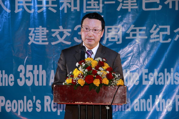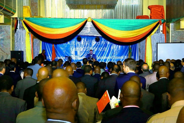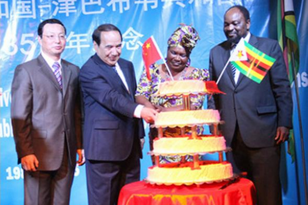 On May 6, the Ministry of Foreign Affairs of Zimbabwe and the Embassy of China in Zimbabwe co-hosted the reception in celebration of the 35th anniversary of the establishment of China-Zimbabwe diplomatic relations. President of the Chinese-African People’s Friendship Association Mr. Abulaiti Abudurexiti and his delegation, Chinese Ambassador Mr. Lin Lin and Minister of Foreign Affairs Mr. Mumbengegwi, Speaker of Parliament Mr. Jacob Mudenda, Minister of Agriculture, Mechanisation & Irrigation Mr. Made, Minister of Environment, Water & Climate Mr. Kasukuwere, Minister of Information Communication Technology, Postal & Courier Services Mr. Mandiwazira, Minister of Health & Child Care Mr. Parirenyatwa, Minister of Welfare Services for the War Veterans Mr. Mutsvangwa, Minister for Provincial Affairs of Manicaland Ms. Chimene and about 400 other senior government and party officials, diplomats, representatives of the Chinese enterprises and community attended the reception.