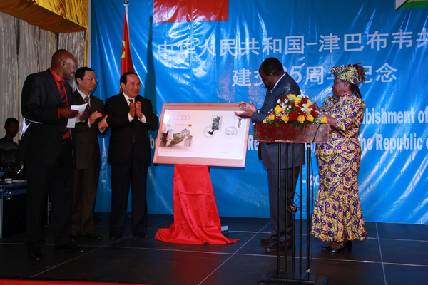 At the ceremony, President Abulaiti jointly unveiled the souvenir envelope commemorating the 35th anniversary of the establishment of diplomatic ties with Minister Mumbengegwi, and cut the symbolic cake together with the Vice President of the Zimbabwe-China Friendship Association Ms. Chimene.