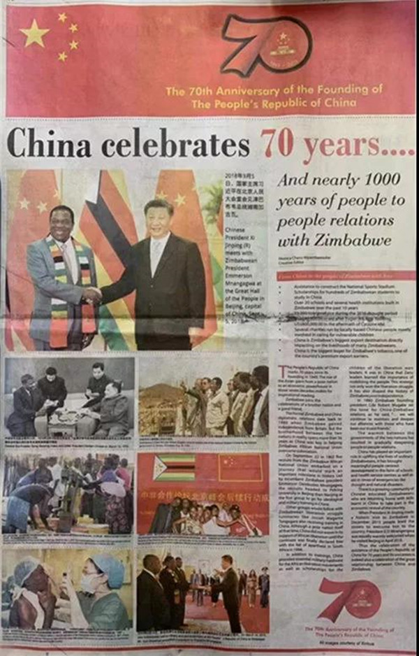 Ambassador Guoaccepted aninterview of local media such as ZBC, Herald, Daily News, News Daily and Independent, and Chinese Media such as Xinhua News Agency, CCTV at the latter part of the reception. On October 26th, Herald published the main part of Ambassador Guo's speechand published a National Day Supplement to celebrate the 70th anniversary of the founding of the People's Republic of China.