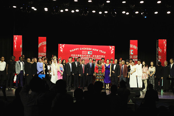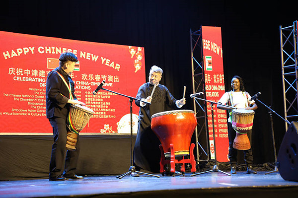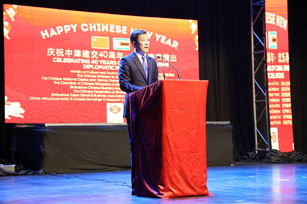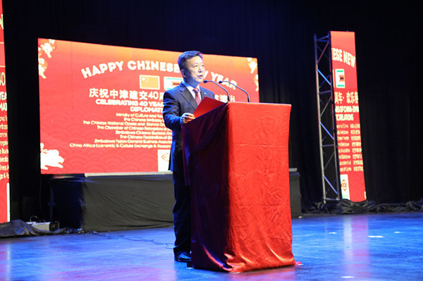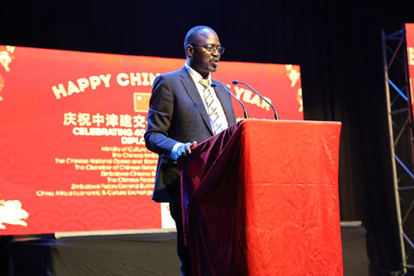 Mr. Moyo, Director of National Arts Council of Zimbabwe, made a speech as the Guest of Honour. He said that it is his pleasure to be here to celebrate the Chinese New year. This celebration carries special significance to the people of Zimbabweand China, as it is being held at a time the two countries commemorate 40 years ofdiplomatic cooperation.Over the past four decades, China and Zimbabwe have developed tangiblecooperation with rich achievements in numerous forms, including aid, trade,investment, financing, infrastructure, industry, agriculture and mining. China hasprovided Zimbabwe with practical cooperation involving Mega-projects like theVictoria Falls and Robert Mugabe International Airport expansion projects, theHwange Thermal Power station expansion and the New Parliament Project.These developments are a vivid reflection of the Chinese government'scommitment to Zimbabwe.