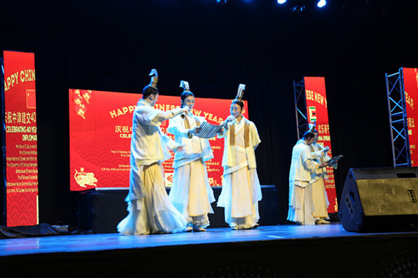 Artists from the China National Opera and Dance Drama Theater brought wonderful performances to the audience by singing, dancing and performing classic music. The dance "Book Fragrance and Rites Music " shows the scene of Confucius setting up an altar under the apricot tree to give lectures and expresses the romantic feelings of ancient Chinese. The solo song "Tante" combines many traditional instruments, and integrates a variety of timbre,showing Chinese rhythm in a unique way. The instrumental ensemble "One Night in Beijing" is full of new ideas, leaving a deep impression on the audience.