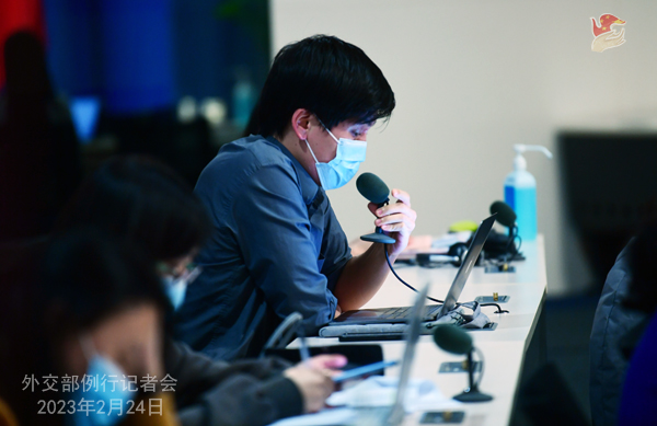 汪文斌:你提到今天中方发布的《关于政治解决乌克兰危机的中国立场》,我想首先向大家介绍一下这个文件。习近平主席提出的“四个应该”“四个共同”和“三点思考”,是中方处理乌克兰问题的根本遵循。中方在乌克兰问题上始终秉持客观公正立场,积极劝和促谈,为推动危机解决发挥建设性作用。