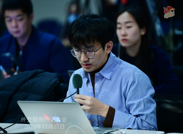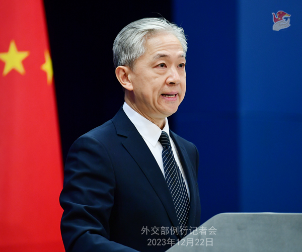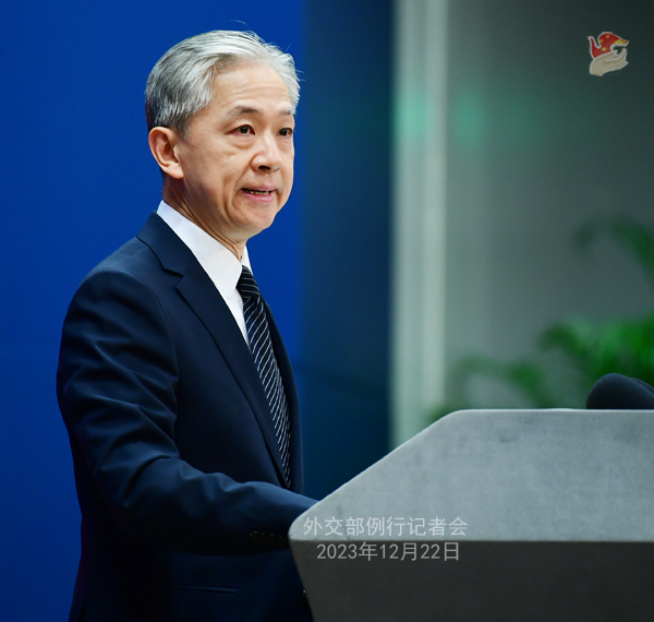 汪文斌:今年11月,习近平主席同美国总统拜登旧金山会晤期间深入阐述了中方在台湾问题上的原则立场,有关新闻稿已经及时发布,大家可以查阅。习近平主席指出,台湾问题始终是中美关系中最重要、最敏感的问题。中方重视美方在巴厘岛会晤中作出的有关积极表态。美方应该将不支持“台独”的表态体现在具体行动上,停止武装台湾,支持中国和平统一。