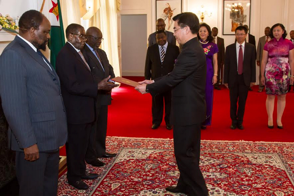 10月14日,新任中国驻津巴布韦大使黄屏向穆加贝总统递交国书,并与其就双边关系等问题交换了意见。