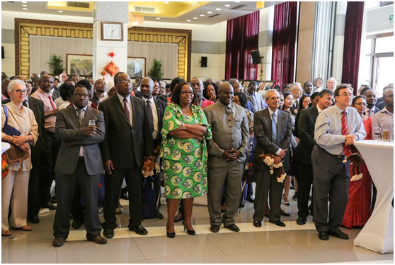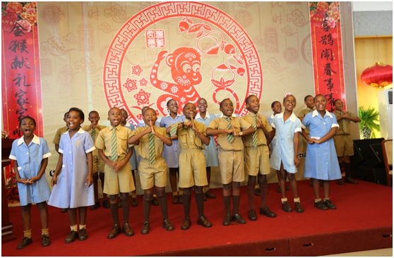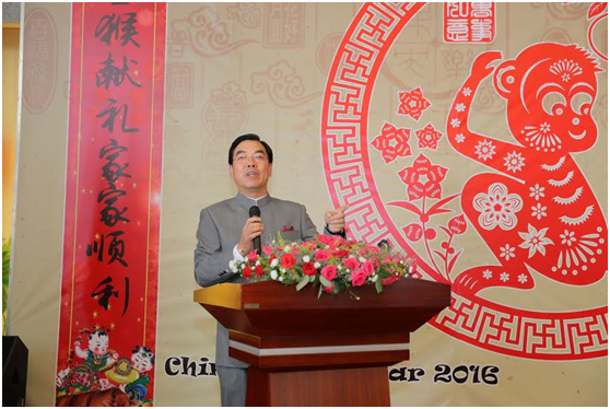 黄大使结合自己不久前赴布拉瓦约和奎鲁等地调研的亲身感受,高度评价在津中资企业和华侨华人在艰苦创业的同时不忘回馈当地社会的精神,称赞他们积极创造当地就业,捐赠慈善学校和孤儿院,帮助津草根民众圆梦。黄大使深情讲述了出差路上偶遇“梦想秀”获奖者家人以及当地患严重眼疾的孤儿丽兹接受“爱心妈妈”团队捐助的故事,并表示,我援津人员远离祖国和家庭,在津救死扶伤、打击野生动物盗猎、传授知识、传播文化;我在津企业承担了涉及津国计民生的重大项目,为津社会经济建设作出突出贡献;华侨华人积极回馈当地社会,关爱弱势群体,表达对津和津人民的深厚情谊,赢得各界广泛赞誉。最后,黄大使说,再过两天就是元宵节,农历新年庆祝活动将告一段落,人们将开始迎接猴年新的机遇与挑战。在中国文化中,猴象征着聪明、灵巧、不怕困难、锐意进取,中国四大名著《西游记》的主角就是最有名的猴子——孙悟空。站在新梦想的开端,让我们像灵猴一样多思富国惠民之策,不畏艰险、开拓创新,开启中津两国发展和人民友谊的新篇章。