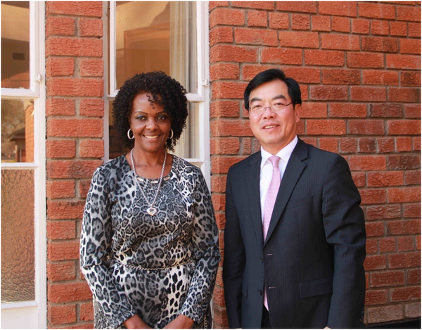 8月29日,驻津巴布韦大使黄屏在津马佐威第一夫人孤儿院拜会津第一夫人格蕾丝·穆加贝。