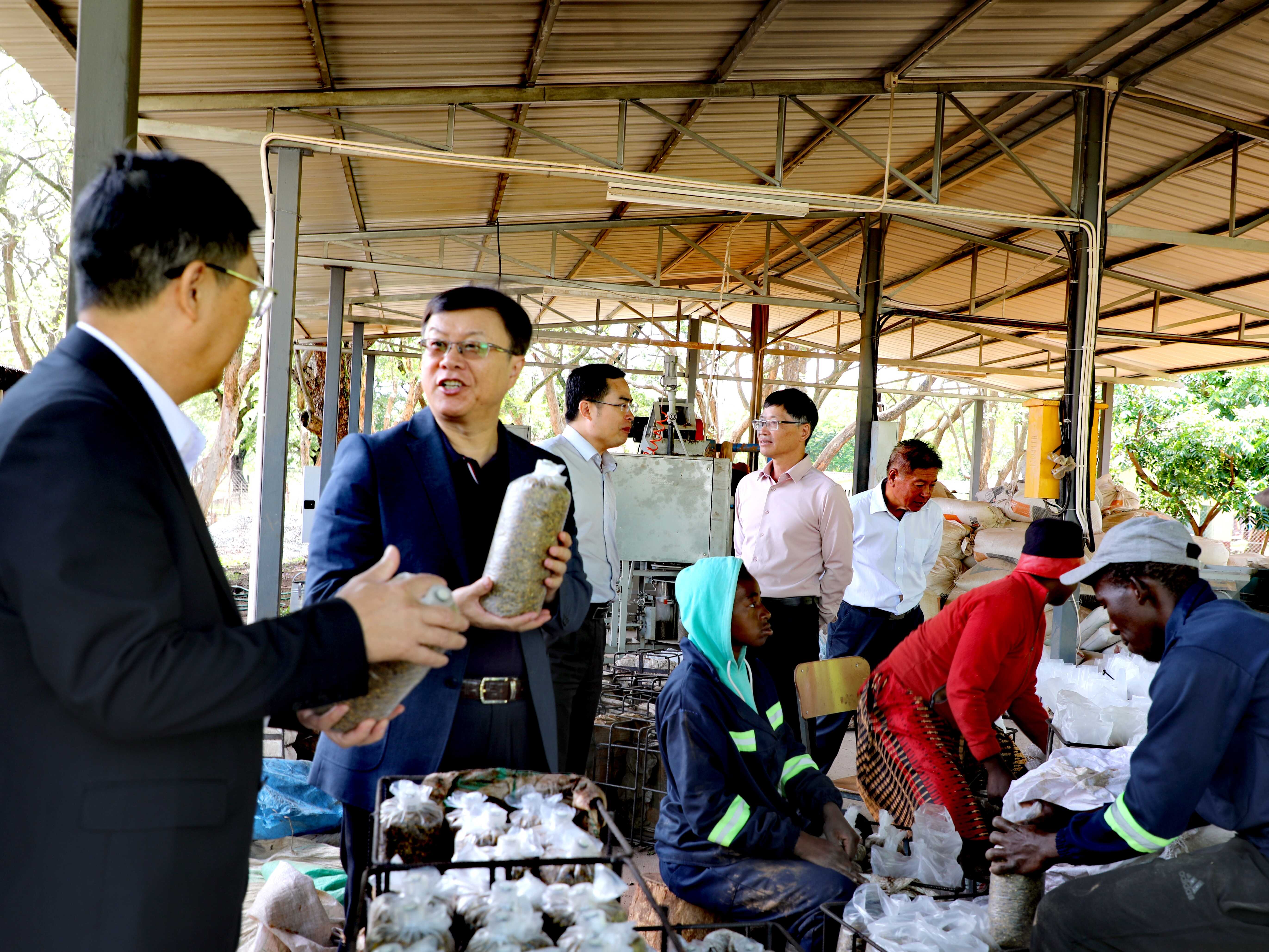 11月25日,驻津巴布韦大使周鼎赴援津菌草技术项目和农业技术示范中心考察,并与相关人员座谈交流。